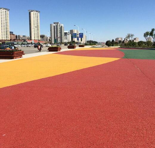 警示作用:红、绿、黄多彩路面,提高司机注意力,有效警示危险区域交通事故率。