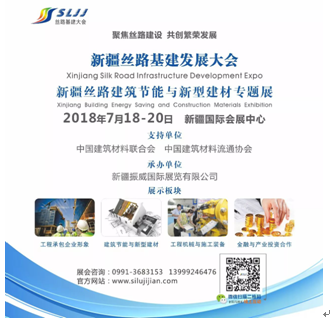 为促进“一带一路”国际合作,推动丝路沿线基础设施互联互通,开展与周边国家在人才、技术、资金等方面供需交流,由振威展览股份承办,中国建筑材料联合会与中国建筑材料流通协会支持举办的“新疆丝路基建发展大会”(简称:丝路基建大会)定于2018年7月18-20日在新疆国际会展中心举行。设置工程承包、建筑节能与新型建材、工程机械与施工装备、金融与产业投资合作四大专题展区,预计参展企业将达300余家,展出面积40000平方米,行业观众13000余人。