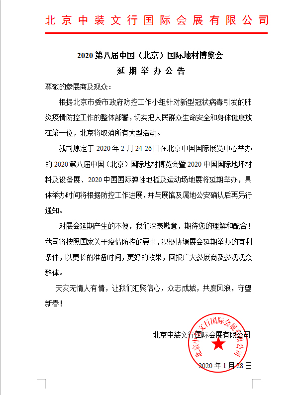 2020第八届中国(北京)国际地材博览会延期通知