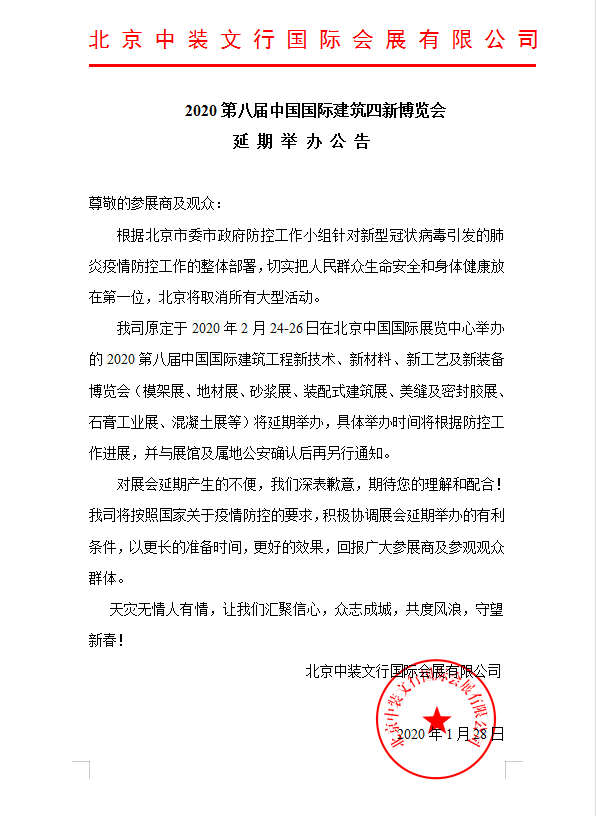 2020第八届中国国际建筑四新博览会延期通知