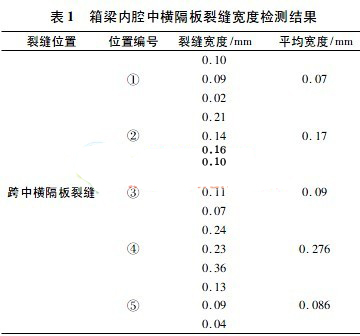 该桥连续梁跨中合龙段中横隔板处产生5 条裂缝,裂缝宽度分布在0. 070 ~ 0. 276mm,且均为贯通裂缝,综合分析确定为收缩裂缝。